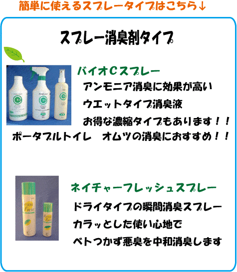 消臭製品の状況別の活用例です。どの製品を使用して良いかわからない方はご参考にどうそ!!
