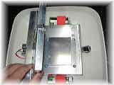 ↑大きさ比較(左は2Lペットボトル) ↑天井、壁取り付け付属ツール ↑内部(単一電池2個付属)